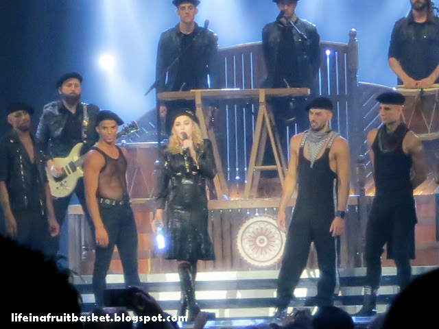 Right when I thought that Madonna was going for the more conservative outfits and costumes this time around, she suddenly stripped down and flashed her entire hiney to the crowd, wearing only a black lace thong. I wasn't able to zoom in and take a better shot since everyone's camera and hands were in the way. Yes, I know. Too many fails for this amateur blogger for one night! The verdict? I think her beautiful, unbelievably fit and smooth bottom just made everyone drop their beers and Big Macs.